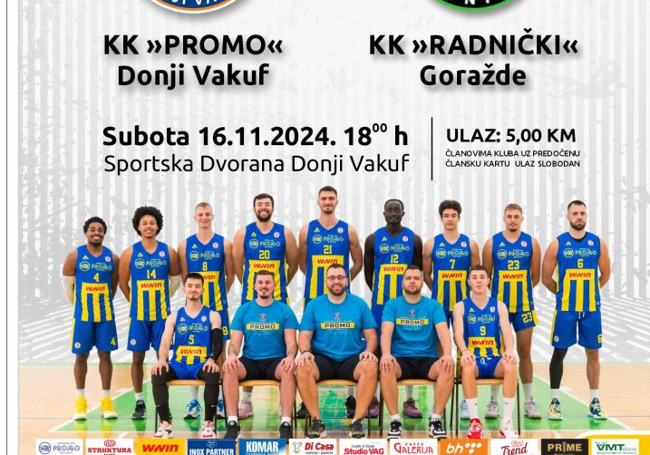 U subotu će KK “Promo” ugostiti novog prvoligaša, ekipu KK “Radnički” Goražde. Utakmica se odigrava u Sportskoj dvorani Donji Vakuf u subotu 16. novembra 2024. od 18.00 sati.