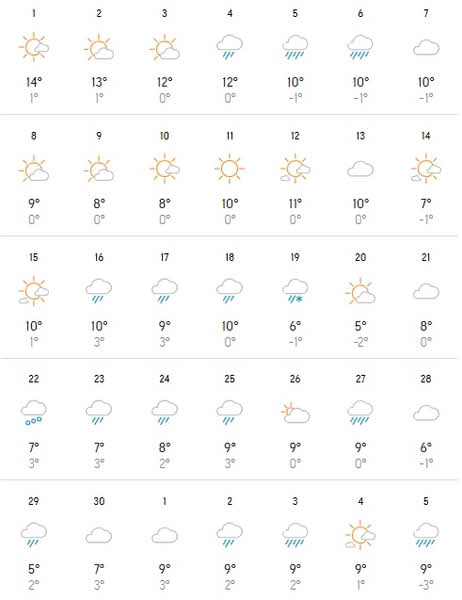 Maksimalne temperature, do 14 stepeni, imat ćemo početkom novembra, a onda će temperature lagano padati sve do početka decembra.