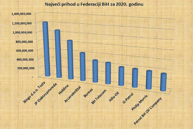 Top 10 kompanija s najvećim prihodima u FBiH u 2020. godini: