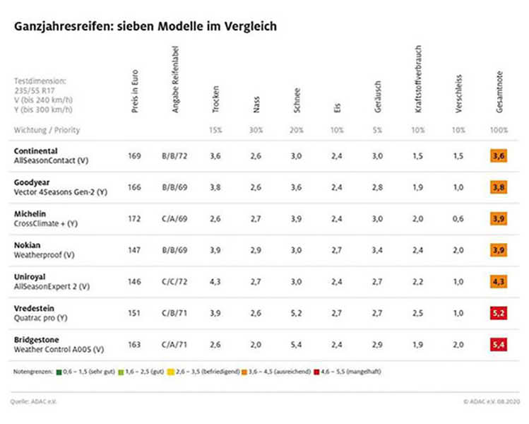 Najugledniji njemački auto-moto klub ADAC je objavio najnovije testiranje guma od 11. avgusta 2020.