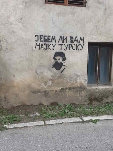 Grafiti su se našli na kućama u naseljima Hareme, Talum i Obalsko, u kojima živi bošnjačko stanovništvo, a iz Općinstog odbora Socijalističke narodne partije (SNP) osudili su ovaj vandalski čin pozivajući “komšije muslimane da ne nasjedaju na provokacije” koje, kako tvrde, dolaze iz DPS (Demokratska partija socijalista op.a.) kuhinje.