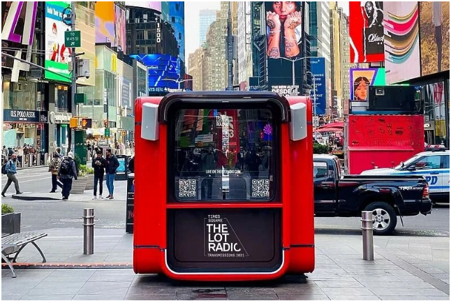 “Vintage crveni kiosk K67 iz 1960-ih postaje tako DJ kabina na nivou plaze, a svaki dan će prenositi uživo između 10 i 22 sata. Posjetioci New Yorka i Times Squarea mogu uživati u melodijama i sceni lično ili online praćenjem videoprijenosa uživo na thelotradio.com”, pisalo je na zvaničnoj stranici radija.