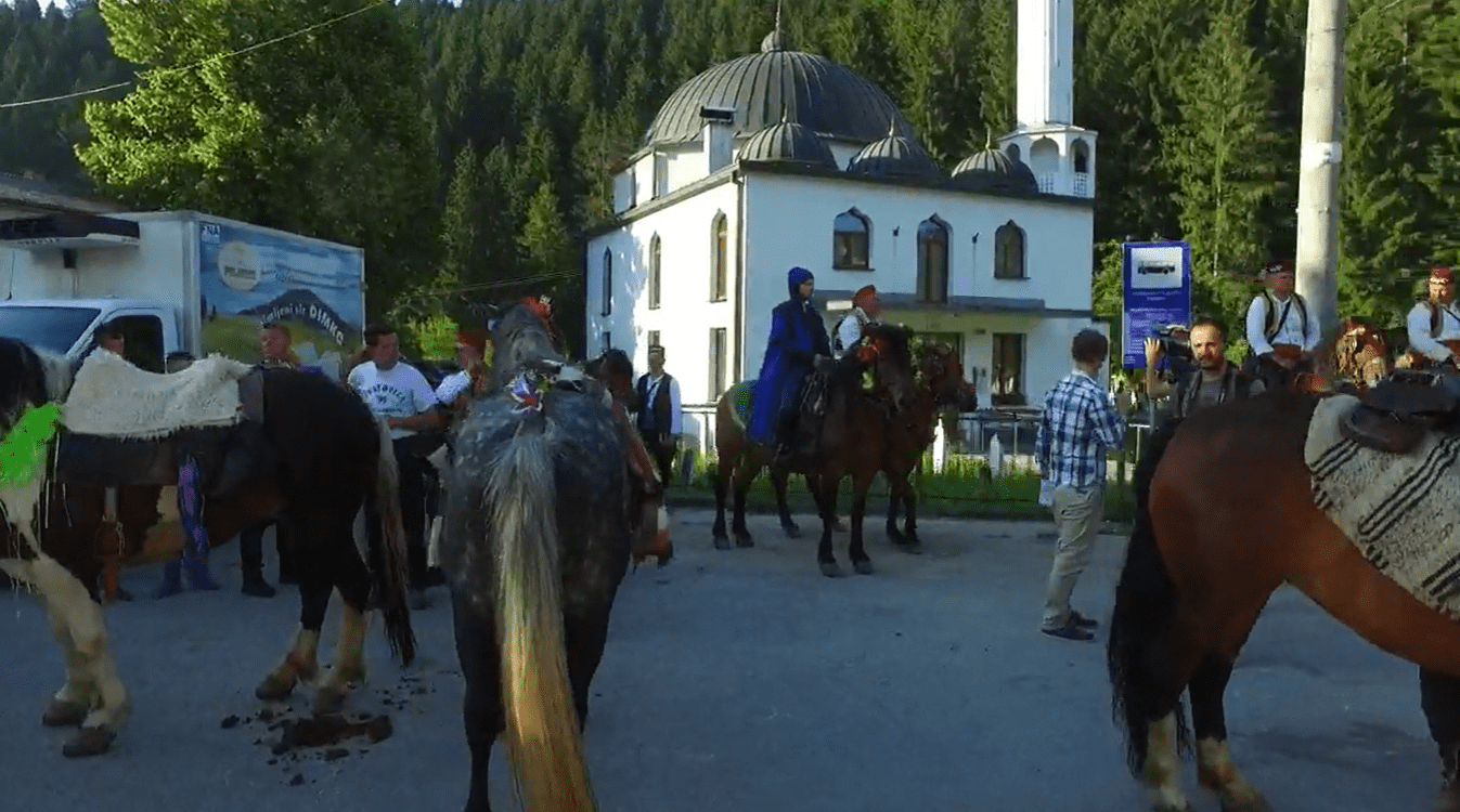 Konjanici odjeveni u tradicionalnu nošnju, učeći tekbire i ilahije, uz prve zrake sunca prošli su kroz malo mjesto Karaulu, dok su ih sa prozora kuća i avlija ispratili i sretan put poželjeli lokalni mještani.