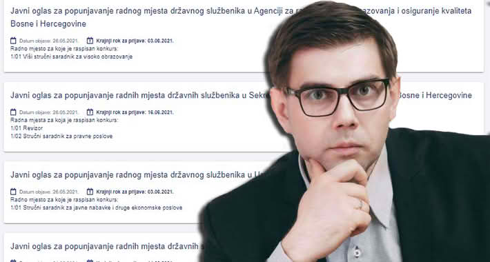 Dovoljno je pogledati internetsku stranicu Agencije za državnu službu FBiH ili Agencije za državnu službu BiH koje su pune otvorenih oglasa za zapošljavanje u nekom ministarstvu ili drugoj instituciji koja se finansira novcem građana ove zemlje.