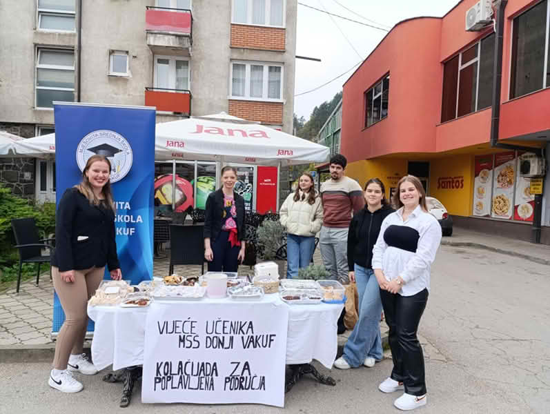 Predstavnici Vijeća učenika Mješovite srednje škole Donji Vakuf su trenutno se nalaze preko puta zgrade Općine Donji Vakuf, gdje su postavili prodajni štand sa kolačima, a sva prikupljena sredstva će biti uručena stanovništvu Jablanice koje je pogođeno poplavama.