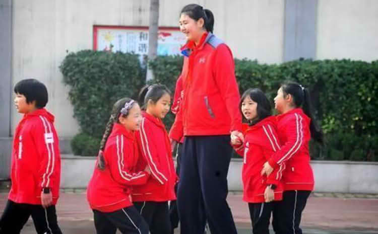 Možda ovo nije ni čudno ako se uzme u obzir da dolazi iz prosječno visoke porodice. Otac je visok 213 cm, a majka 198 cm. Oboje su košarkaši, a majka je reprezentativka Kine. Pa ipak ovih 213 na njene godine ipak je malo previše, ali čni se da su geni oba roditelja učinili svoje.
