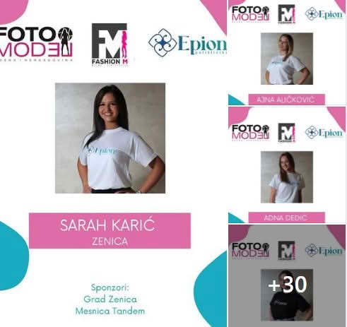Tridesetpet prekrasnih mladih dama takmičit će za titulu najljepše. Među takmičarkama su i dvije Donjovakufljanke Sara Morić i Adna Hrnjić. Na fb stranici Izbor za Fotomodel Federacije BIH možete lajkom podržati naše sugrađanke . Djevojka koja do večeras u 21 sat bude imala najviše lajkova, osvaja titulu FOTOMODEL FACEBOOKA FBIH.