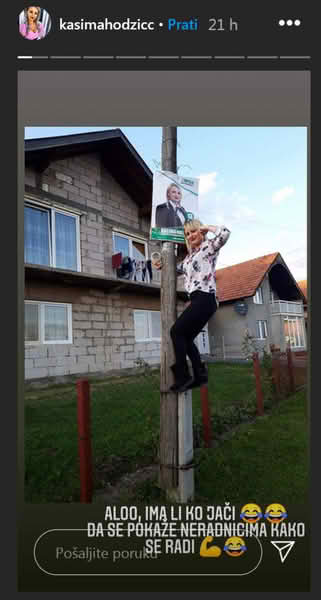 Kasima Hodžić, kandidatkinja stranke PDA za lokalne izbore u Živinicama na svom Facebook profilu podijelila je fotografiju koja je ubrzo postala hit na društvenim mrežama. Ova kandidatkinja za gradsko vijeće popela se na banderu kako bi pozirala pored svog plakata.