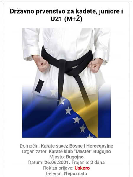 Karate klub “MASTER” Bugojno će biti tehnički organizator najveće karate smotre u Bosni i Hercegovini – DRŽAVNO PRVENSTVO ZA KADETE, JUNIORE, U21 I PARA KARATE.