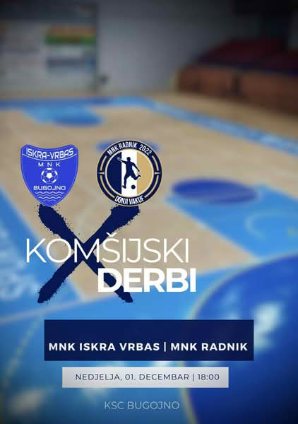 U okviru Prva futsal liga FBiH – Grupa Centar, MNK “Radnik 2022” Donji Vakuf, u nedjelju 1. decembra 2024. godine , igra komšijski derbi u susjedom Bugojnu. Naime, u dvorani Kulturno sportskog centra u Bugojnu, od 18.00 sati malonogometnu utakmicu, odigrat će ekipa iz Donjeg Vakufa, MNK “Radnik 2022” i MNK Iskra Vrbas Bugojno.