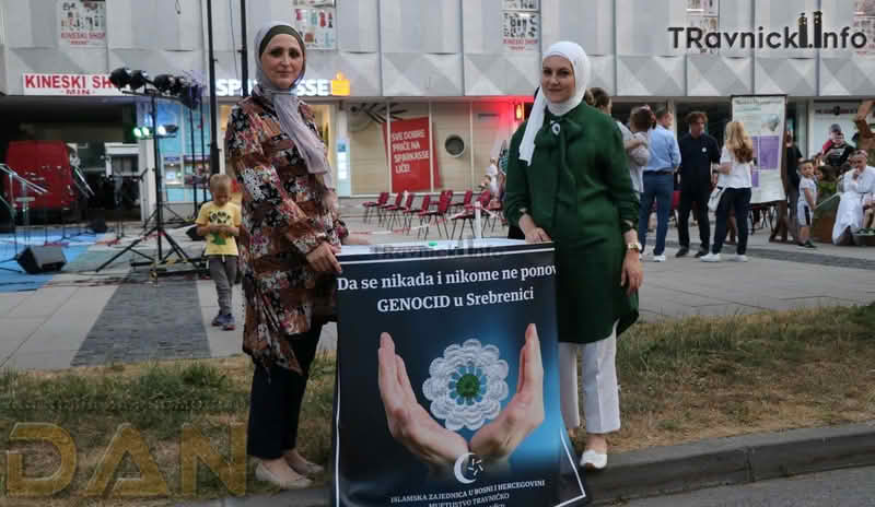 Odjel za brak i porodicu Muftijstva travničkog večeras je na glavnoj gradskoj ulici organizovao upis u Knjigu sjećanja, te podjelu pedeset Cvjetova Srebrenice i pedeset bijelih ruža.