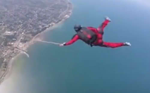 Naime, na videu je zabilježen trenutak u kojem padobranac nije uspio otvoriti padobran na vrijeme nakon skoka iz aviona.