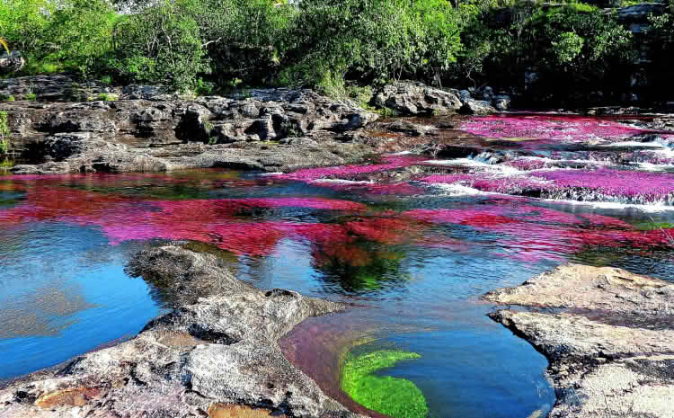 Od kraja jula do novembra, Kanjo Kristales u Kolumbiji je najšarenija rijeka na svijetu. Kratki period između kišne i sušne sezone dovodi do eksplozije crvenih cvjetnih biljaka koje naseljavaju vode rijeke.