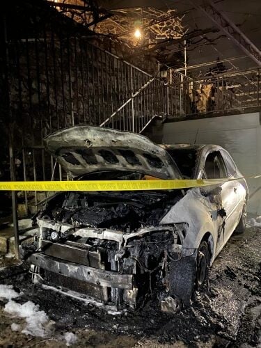 Nadzorne kamere su snimile mušku osobu sa kačketom kako vozilo poljeva benzinom i zapaljivom smjesom, a potom pali vozilo, koje je potpuno uništeno. Vatrogasci su intervenisali i ugasili požar a policija izvršila uviđaj.