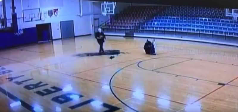Joe Orians, školski domar, nije bio svjestan da ga snima kamera kad je uzeo loptu i zabio tricu s leđa.
