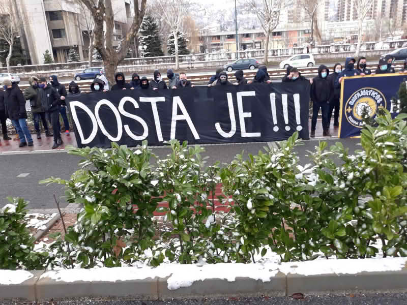 Navijači su se okupili u znak protesta protiv Saveza zbog imenovanja Peteva sa transparentima “Dosta je! i Ne možete nas kupiti”.