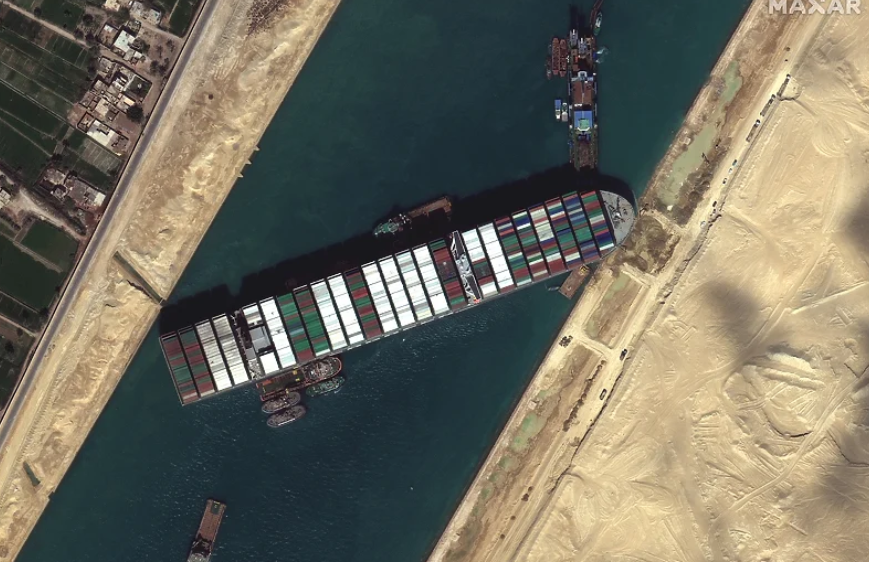 Brod kompanije Evergreen, čija je dužina jednaka visini nebodera Empire State Building u New Yorku, od 23. marta stoji zaglavljen u kanalu. Od tada se pokušava pomjeriti ovo plovilo teško 224.000 tona.