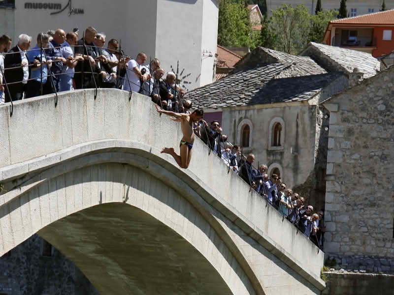 Polaganjem cvijeća na Partizanskom spomen-obilježju, učenjem Jasina te počasnim skokom sa Starog mosta i bacanjem cvijeća u Neretvu danas je u Mostaru obilježen Dan pobjede nad fašizmom i Dan Zlatnih ljiljana.