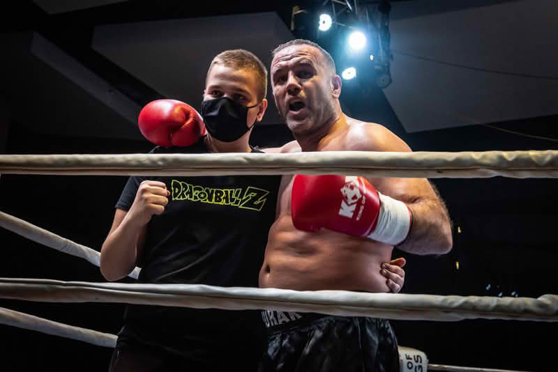 S druge strane, svi mečevi su bili super. Ono što još mogu reći je da sam ja u ovom meču savladao gorostasa, koji je sa mnom u omjeru bio 1:1. Ipak sam prevagnuo sa 2:1 protiv njega. Nikola Dimkovski je došao izrazito spreman i nabrijan. Moji jaki low kick-ovi po unutrašnjem dijelu njegove prednje noge su ostavile traga i uspio sam ga finiširati već pred kraj prve runde, što je moja treća pobjeda u nizu nokautom.