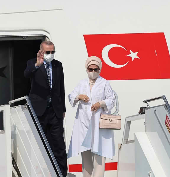 S Erdoanom su doputovali njegova supruga Emine, ministar trgovine Mehmet Mus, ministar kulture i turizma Mehmet Nuri Ersoj, šef ureda za komunikacije Fahretin Altun i glasnogovornik ureda turskog predsjednika Ibrahim Kalin.
