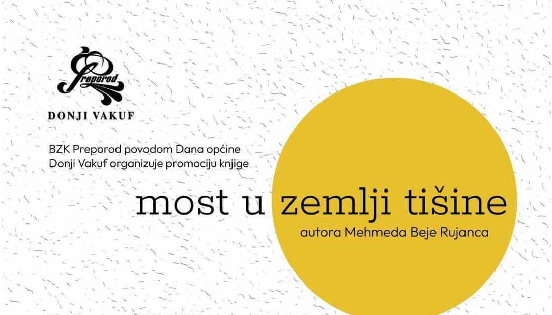 Bošnjačka zajednica kulture „ Preporod“ Donji Vakuf, u srijedu organizuje promociju knjige  „ Most u zemlji tišine“, autora našeg sugrađanina  Mehmeda Beje Rujanca.
