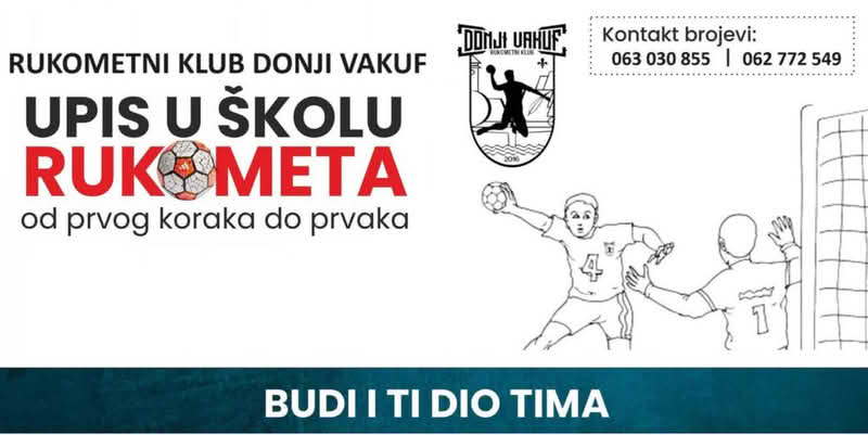 Dragi roditelji, ako vaša djeca vole sport, timski rad i zabavu, sada je savršena prilika: upisujemo djecu 2012. godište i mlađe u Školu rukometa Rukometnog kluba Donji Vakuf!