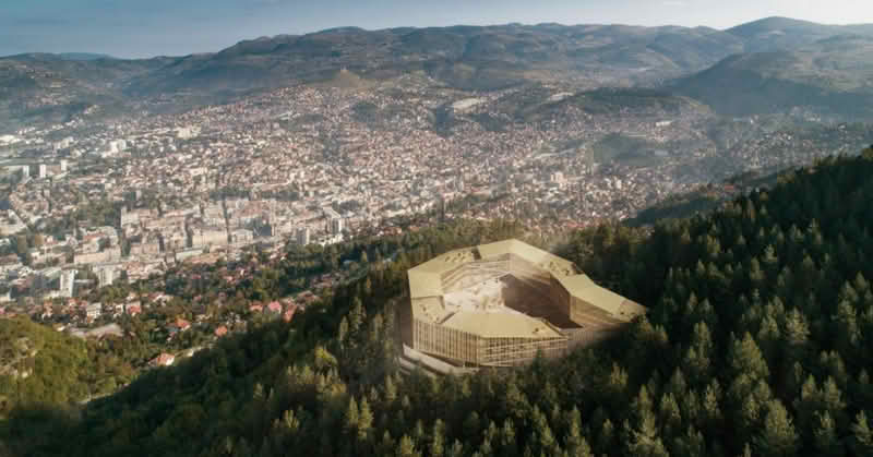 “Roof Gardens svojom oktogonskom formom i javnim centralnim trgom odiše tradicionalnim motivima i vanjskim amfiteatrom povezanim šumskom šetnicom sa stogodišnjom austrougarskom kulom Palež. Prostrani životni i zabavni prostori precizno su smješteni otvarajući pogled na široku panoramu od vrha Bjelašnice, preko Ilidže do Baščaršije i Bijele Tabije. Sama forma zgrade predstavlja ravnotežu između okolnog pejzaža inspiriranim borovom šumom i stijenama te pažljivo osmišljenim sadržajima”, opisuje projekat Berin Alagić.