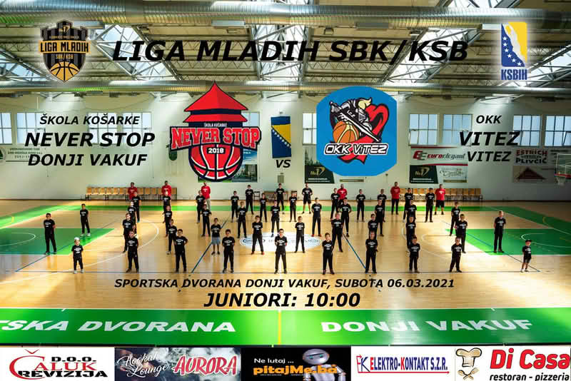 U nastavku Lige mladih SBK/KSB u košarci, Škola košarke Never stop Donji Vakuf, bit će domaćin ovog vikenda. Naime, u Sportskoj dvorani u Donjem Vakufu, juniorska selekcija Never stopa ugostit će svoje vršnjake iz OKK Vitez iz Viteza. Utakmica se odigrava u subotu, 06.marta 2021. godine od 10 sati.