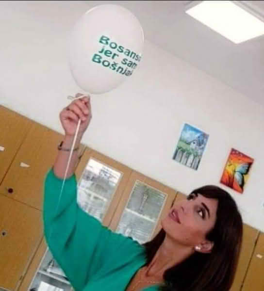Osim himne, ona je ukrasila učionicu balonima sa natpisom “Bosanski jer sam Bošnjak”.