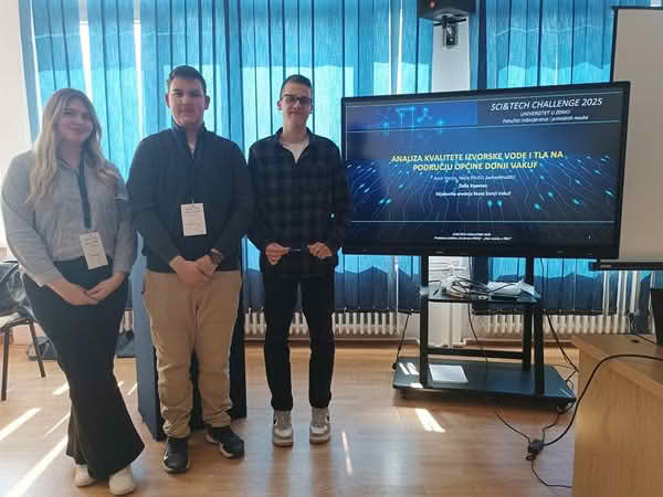 Jučer su naši vrijedni učenici učestvovali na finalnom takmičenju Sci-Tech Challenge na Fakultetu inženjerstva i prirodnih nauka Univerziteta u Zenici. Ponosno su predstavili svoj istraživački rad na temu “𝐀𝐧𝐚𝐥𝐢𝐳𝐚 𝐤𝐯𝐚𝐥𝐢𝐭𝐞𝐭𝐞 𝐢𝐳𝐯𝐨𝐫𝐬𝐤𝐞 𝐯𝐨𝐝𝐞 𝐢 𝐭𝐥𝐚 𝐧𝐚 𝐩𝐨𝐝𝐫𝐮č𝐣𝐮 𝐨𝐩ć𝐢𝐧𝐞 𝐃𝐨𝐧𝐣𝐢 𝐕𝐚𝐤𝐮𝐟”. U okviru istraživanja, učenici su izvršili analizu uzoraka vode i tla sa četiri izvora: Ajvatovica , Semešnica, Balihodžički potok i Vujića potok.