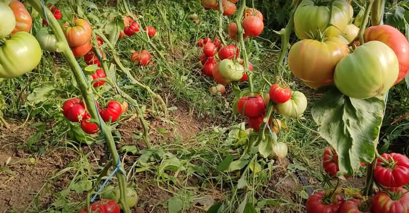 Dok obilazi baštu, poljoprivrednik Đorđe Vakčić pokazuje požutjele listove i plodove paradajza i krastavca. Kako kaže, vrućina je spalila povrće.
