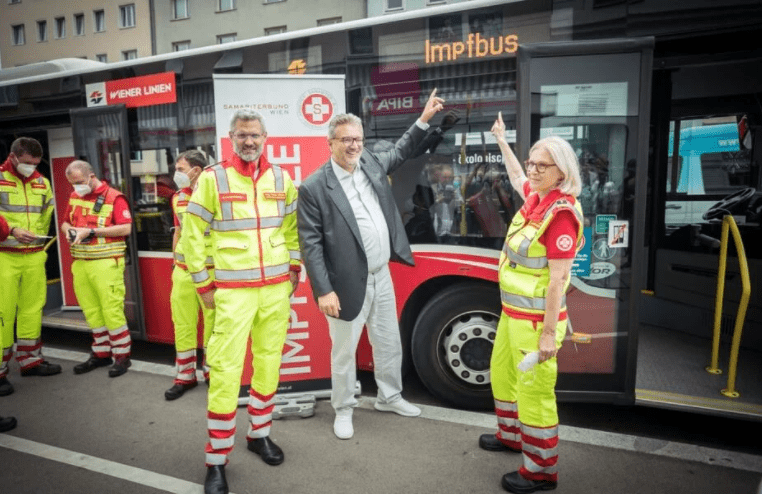 Od srijede, 4. augusta 2021, glavnim gradom Austrije kruže dva autobusa za vakcinaciju. Pored toga, vakcinacija protiv COVID-19 je omogućena i u mnogim trgovačkim centrima u Beču.