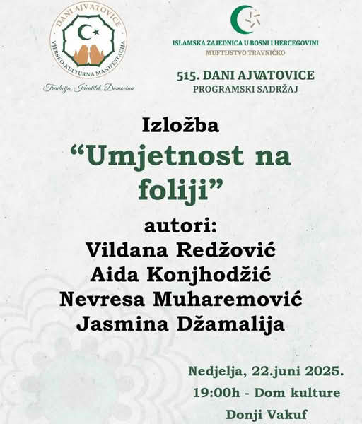 Naši sugrađani sutra imaju priliku uživati u izložbi “Umjetnost na foliji” koja se u našem gradu organizuje u okviru 515. “Dana Ajvatovice”.