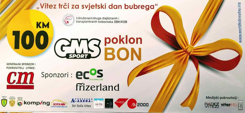 Nagrade: Za tri prvoplasirana natjecatelja u muškoj i ženskoj kategoriji biće osigurane robne nagrade u vidu poklon bona u trgovini GMS Sport