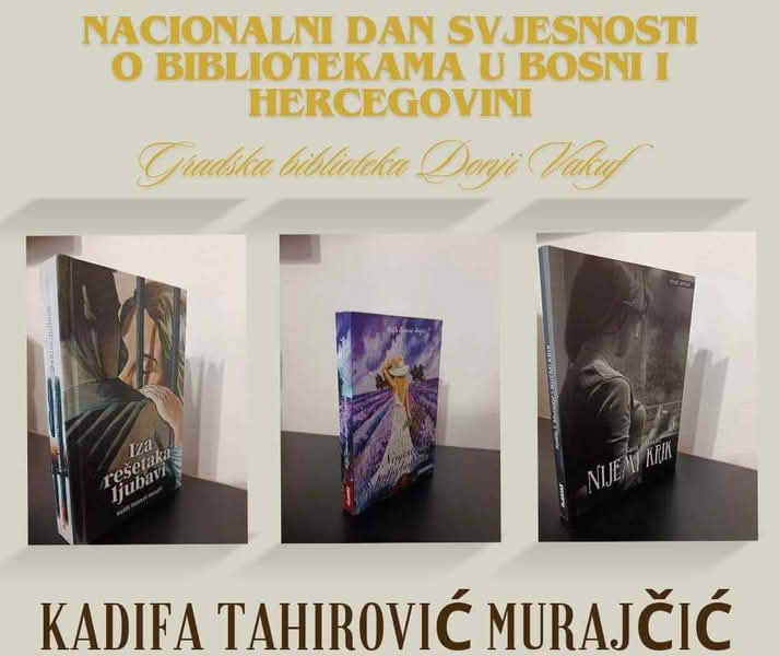 JU Centar za kulturu, informisanje i sport Donji Vakuf povodom Nacionalnog dana svjesnosti o bibliotekama u Bosni i Hercegovini organizuje promociju knjige “Iza rešetaka ljubavi” autorice Kadife Tahirović Murajčić. Promocija će se održati u ponedjeljak, 28. oktobra u Maloj sali Doma kulture s početkom u 19 sati.