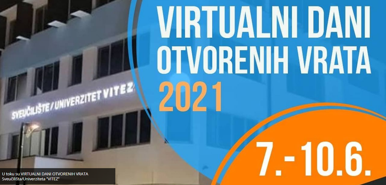 Sveučilište/Univerzitet “VITEZ“ u Travniku, u periodu od 7. do 10. juna 2021. godine, organizuje Virtualne dane otvorenih vrata.