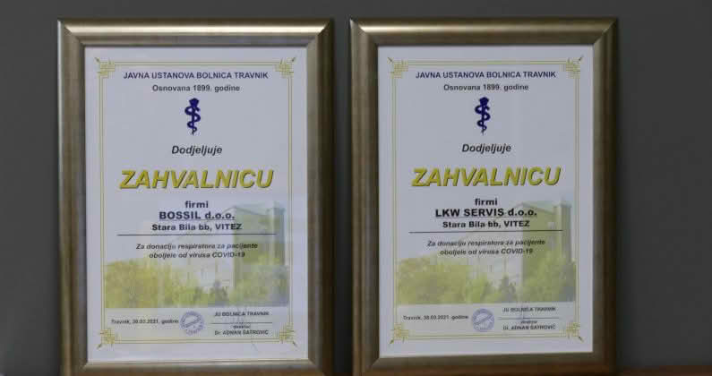 Na temelju zahtjeva JU Bolnica Travnik, poduzeća BOSSIL d.o.o. i LKW SERVIS d.o.o. iz Viteza, zajedno s uposlenicima, donirali su dva respiratora koji su bili neophodni u trenutnoj borbi protiv koronavirusa. Vrijednost donacije iznosi 95.940 KM.