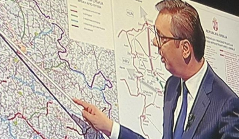 Predsjednik Srbije Aleksandar Vučić, u maniri pravog profesora, štapićem je na ploči pokazivao što se sve gradi u zemlji.