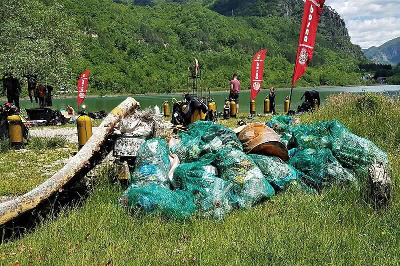 Ronioci Ronilačkog kluba Bosna su proteklog vikenda iz dubine jezera i na njegovoj obali prikupili približno 50 vreća smeća, što je prilično dobra vijest s obzirom na to da je prošle godine na istom mjestu prikupljeno oko 65 vreća smeća.