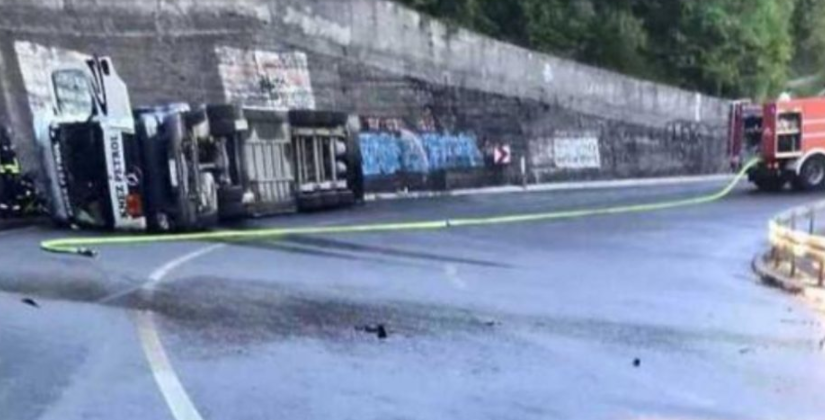 Zbog prevrtanja cisterne usporeno je saobraćanje na magistralnom putu Tarčin-Konjic, kod mjesta Podorašac.